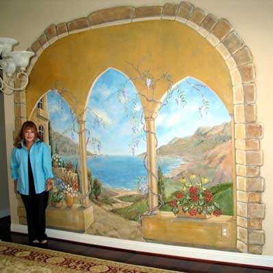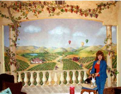 In 1998, Victoria moved to Pleasanton and decided to do what she had always dreamed of – To start a mural business and completely immerse herself in her painting. Since that time she has worked continuously painting, creating murals and Trompe l’oeil for a variety of private collectors and interior designers. Her clients include: commercial businesses, model home designers, interior designers, home design centers, commercial contractors' showrooms, 2 public libraries, a hospital, restaurants and more.
