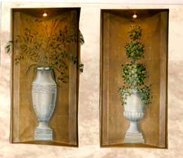 I prefer to do murals. Because I live in Northern California, I do a lot of vineyard murals. I can paint people, animals, water-anything-and I do faux finishes. I paint walls, fabric, furniture-everything except cars.